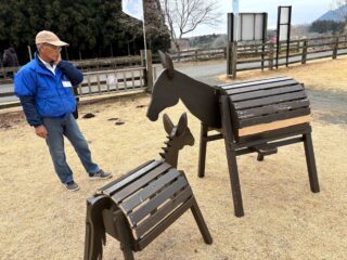 ウエダさんが、傷んだ木馬をサササと補修完了。