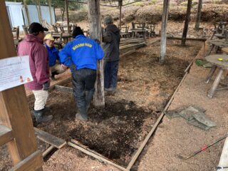 入り口の扉の開け閉めの具合が悪かったので、直し中。
