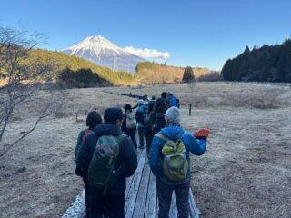 田貫湖の「フガクテラス(逆さ富士が撮れることで有名)」で自然や富士山の歴史、溶岩の話からスタート。