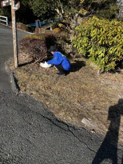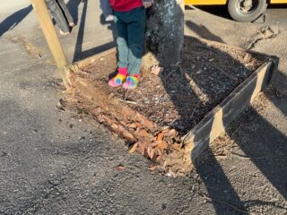 カシの根元の、囲った木材が痛んでしまって交換必要。