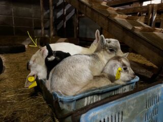 コヒツジに断尾リングを装着。