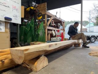 「丸太を(ながーく)半分に切るだけ」という加工を製材屋さんに依頼し、