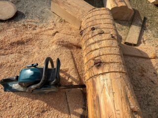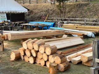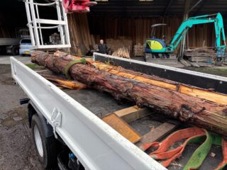 製材屋さんに預けてあったヒノキの丸太を(材料が足りなくなったので)