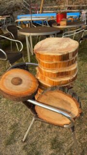 牧場で育ったヒノキから、お料理を置く台を切り出す。(今月は、本日だけ定休日)