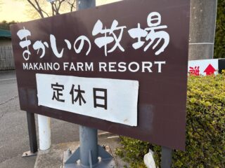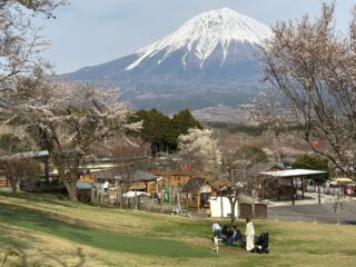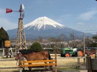 暖かい日差しの中、桜が7分咲きのまかいの牧場。