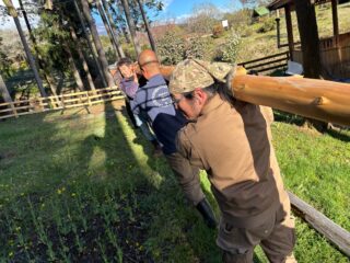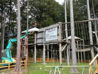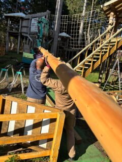 山のアスレチックの補修作業を大工さんがw(昨日の写真のアキラさん)