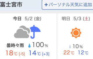 でも、5月3・4・5日は、天気が良くなってきた!!(6日は降水確率80%…)