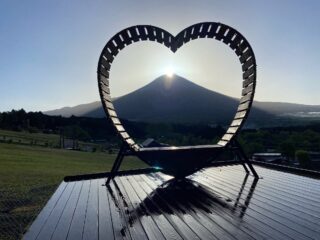 空に囲まれて、富士山の上に人が浮いている状態 は