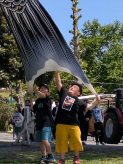 「さわれるコイノボリさん」も嬉しいにちがいない。