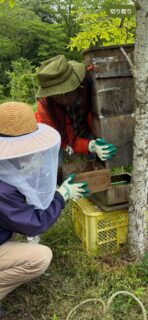 ※この行為では、ニホンミツバチは怒って刺してきたりは全くしません。