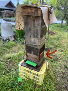 分蜂しそうな群れから、100メートルぐらい離れて、四方に置いてあると最高ですが、置く場所は他人の土地になるので