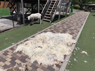 成羊(せいよう:大人の羊)で、1回の毛刈りで3キロほどの羊毛が採れます。