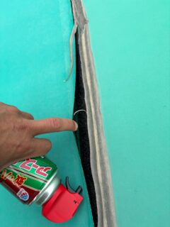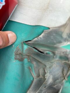 屋根に上がったのでそこも見に行くと、テント生地の継ぎ目が少し裂けていた。