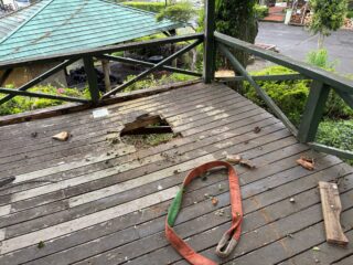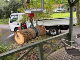 テラスに生えていたふっといナラの枯れ木除去作業をやっと完了させられました。