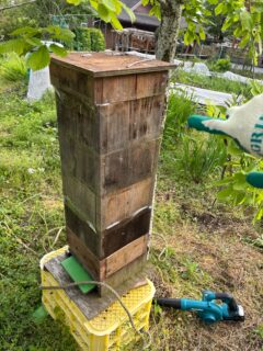 この「重箱式巣箱」は、四角い枠が積み重ねてあるだけ。