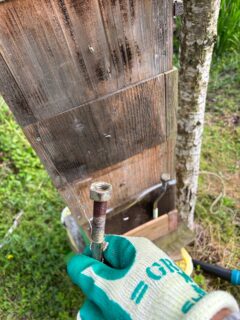 「当然ミツバチがモッサリいるので、ブロアーでどいてもらう」