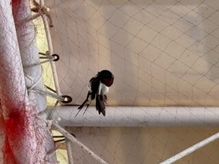 「ツバメがネットにからまってて、助けてあげて欲しい」と要請が来る。