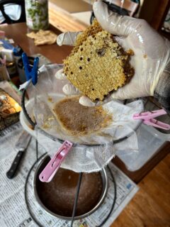 周りに垂れたハチミツや、搾りかすの「残った甘さ」も貴重な蜜。