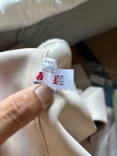 その時すぐ外しまして、「防炎マーク」のついているものをホームセンターで買ってきて、交換しました。