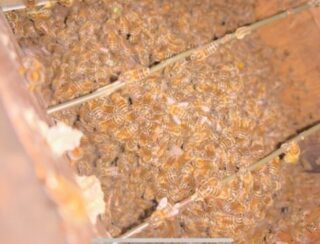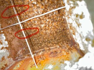 1か月前に差し込んで増やした「一番下の段」の中で、半分ぐらいまで巣が成長したので