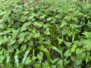 シャガの花畑的な場所なのですが、見えるのはドクダミの葉ばかり。
