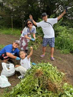 そして畑収穫を終わって、場内で落花生を洗い始めたときには…