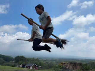 乳しぼり会場で、「空飛ぶホウキの撮り方解説」をした際、