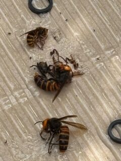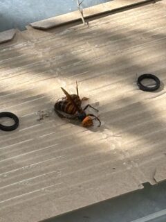 自然界でスズメバチってとても大切ですが、ワタシのミツバチちゃんを襲う子は…こうだ。