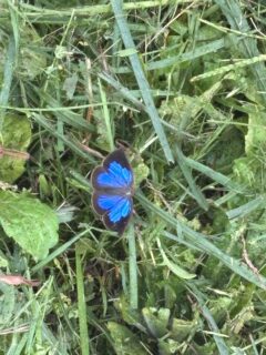 刈った草に、「ムラサキシジミ」が止まってハネを広げ、美しい姿を見せてくれておりました☆彡