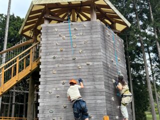 夕方、お姉さん達がみんなでアスレチックに大挑戦。