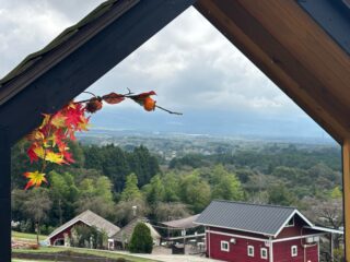 紅葉やカキやクリのディスプレイをフォトスポットに取り付けました。