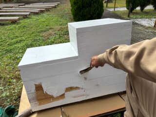 時間のスキマを見つけて、「羊飼いのゴルフ」で「人が乗る表彰台」を塗り上げ中のワタシ。