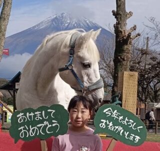 スノーチャペル君(馬)が大きくなり、富士山も入って