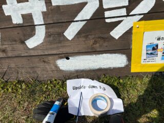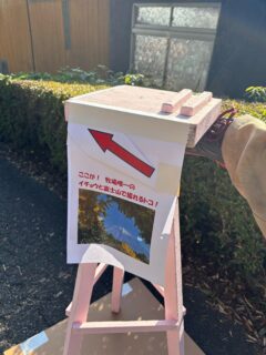 朝のうちに、その辺にあった材料でカメラ台を作り、「【ココからコレが撮れます!】の案内POP」もチャチャッと作って貼っておく。