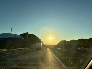 この後帰る際(6時ごろ)、牧場から車で5分走っただけで、「月が右側」に 来たので…
