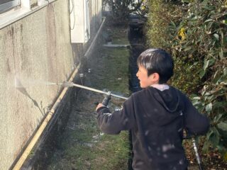 高圧洗浄機で、壁をゴリブシュ洗う!