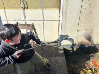 高圧洗浄機で、壁をゴリブシュ洗う!