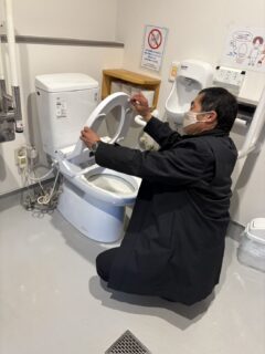4時半ごろ牧場に戻り、トイレ清掃をする。