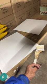 「○×クイズをするかも」って言うんで、長い板から正方形を2枚切り出して、塗ってみる。