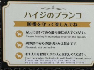 アンケートで「ハイジのブランコ」で、【ずっと前の人が交代してくれなかった】というご意見が。