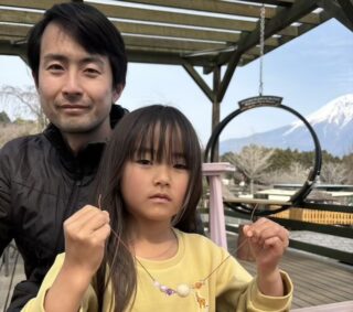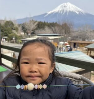 「作品と笑顔」の後ろに、サラッと富士山を入れるのもポイントです。📷