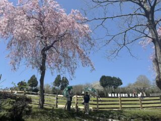 馬飼野会長(先代)の植えたシダレザクラが、満開のまま2週間ほど。