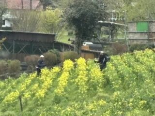 まっ黄色に満開を迎えた(迎えてしまった)ナノハナ畑。