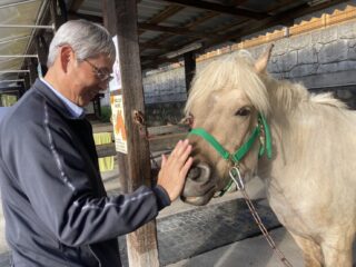 「パロマ君に、パフパフとご挨拶する馬飼野社長。」