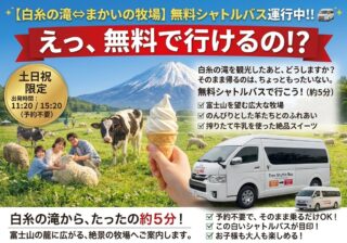 まかいの牧場から白糸の滝までの無料送迎バス(10人乗り)運行。11時と15時。