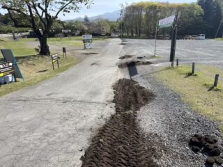 GWに向けて、ヤギの塔周りで出た土で、駐車場の凹みを徹底的に直す。
