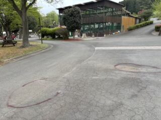 これを倒した際に、枝の出っ張った部分がアスファルトに当たり、地面がヘコんでしまったのです。