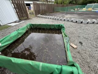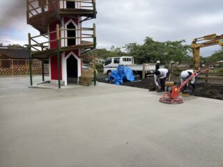 レース会場前の変な凹み、ここにも(ついでで)コンクリを昨日いれる。