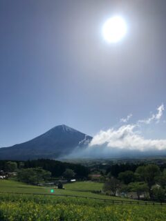 菜の花畑の上で、大空に飛んでいる写真が撮れる