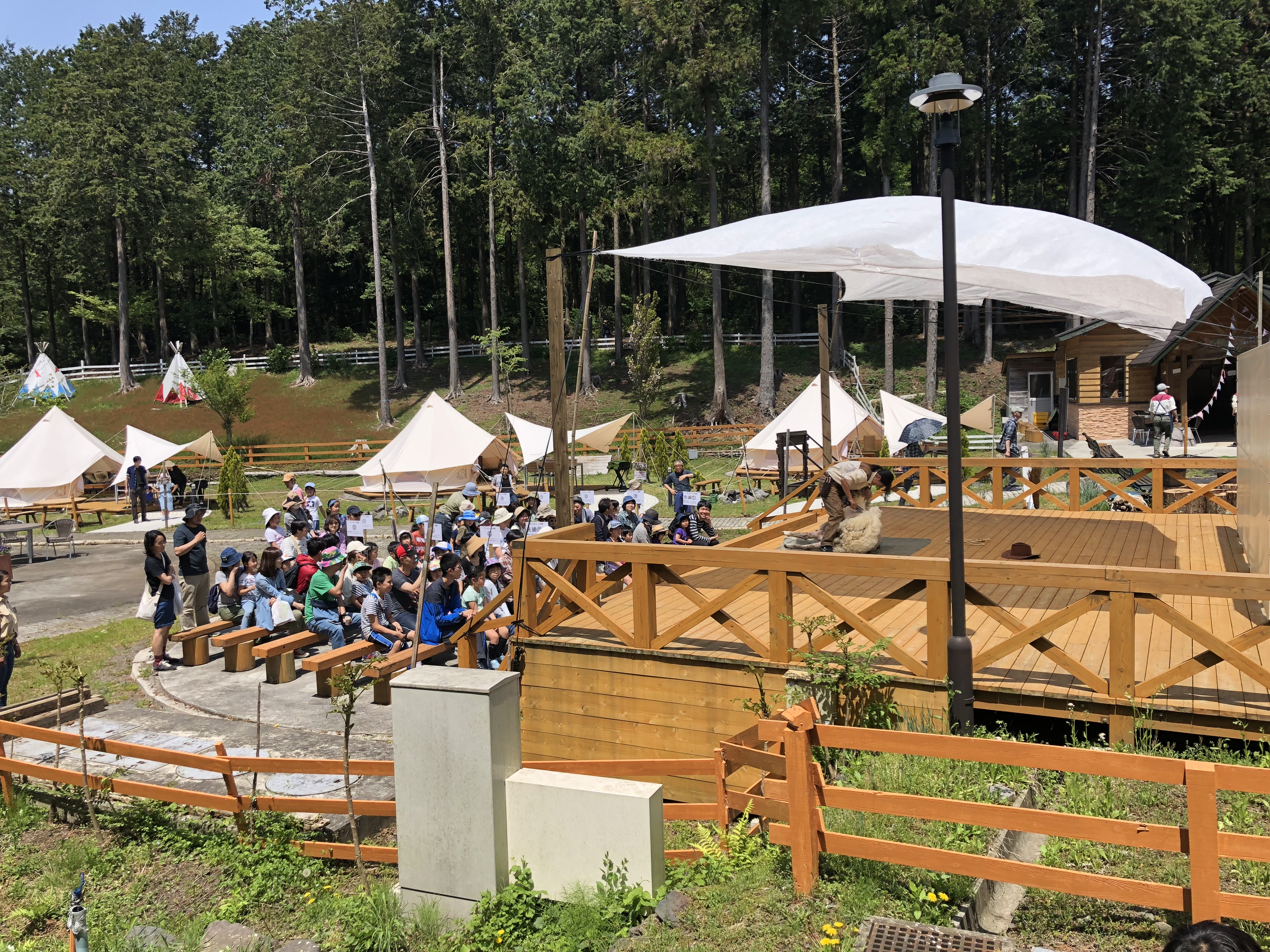 ハタノお姉さんの羊の毛刈りは11時から、山の「森の隠れ家」で開催中!